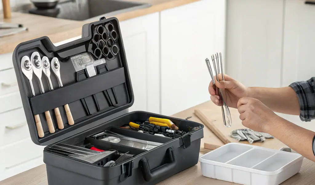 6. Adoptez le réflexe de toujours remettre chaque objet dans son contenant dédié après usage. C’est souvent là que tout se joue pour éviter le chaos qui s’installe.