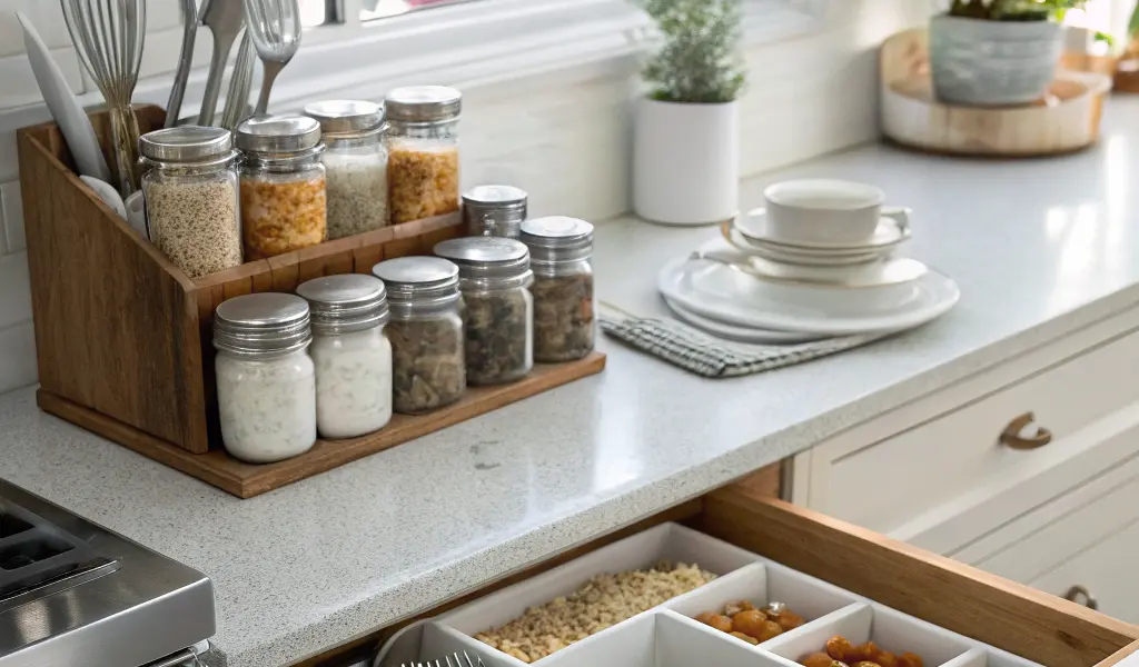 • Dans une cuisine, ce système marche aussi très bien pour les épices ou les petits ustensiles souvent dispersés.