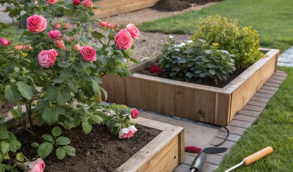 - Matériel nécessaire : engrais adapté pour rosiers, arrosoir ou tuyau, sarcloir ou fourchette de jardinage