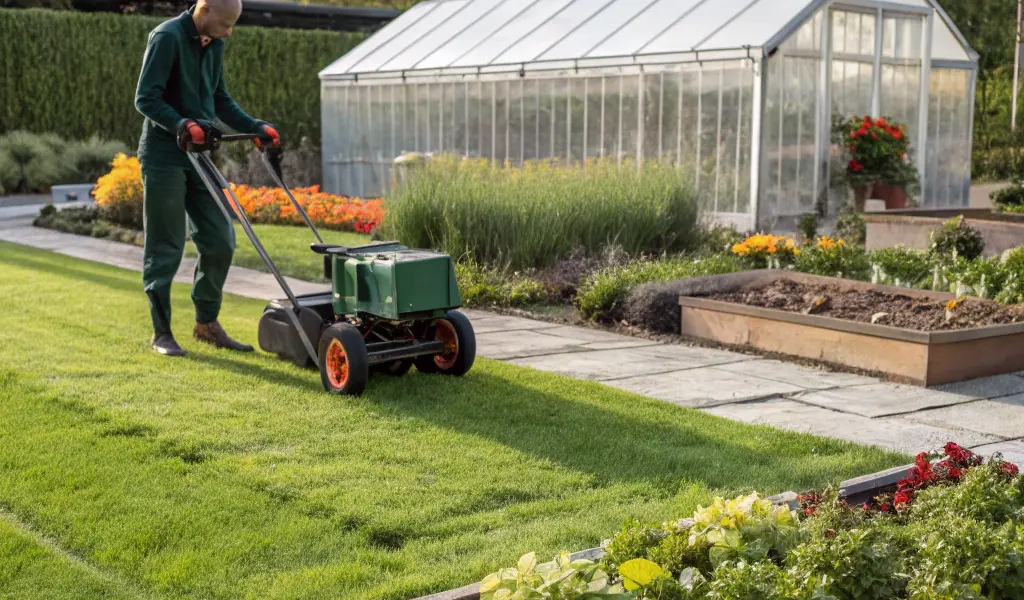 - Matériel nécessaire : engazonneuse thermique, semences, râteau, tuyau d’arrosage