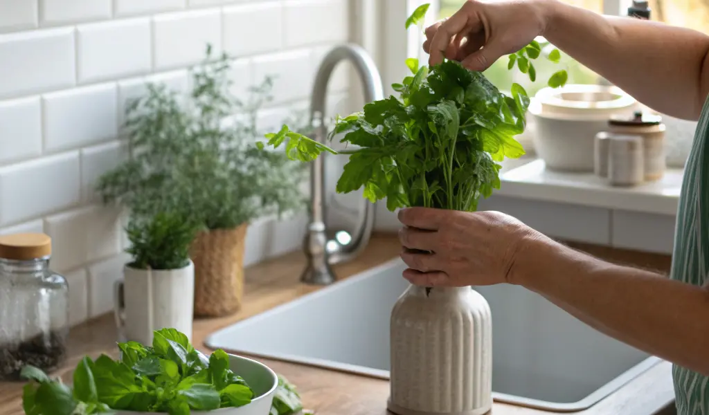 - Cette astuce fonctionne très bien aussi pour conserver les herbes fraîches, comme un bouquet de persil ou de coriandre.